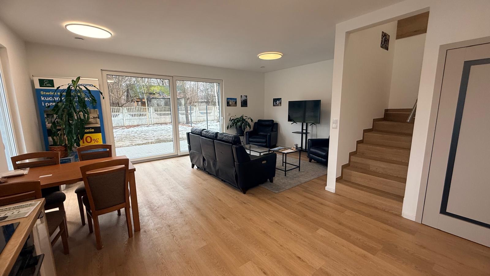 - przestronny salon z aneksem kuchennym i wyjściem na ogród