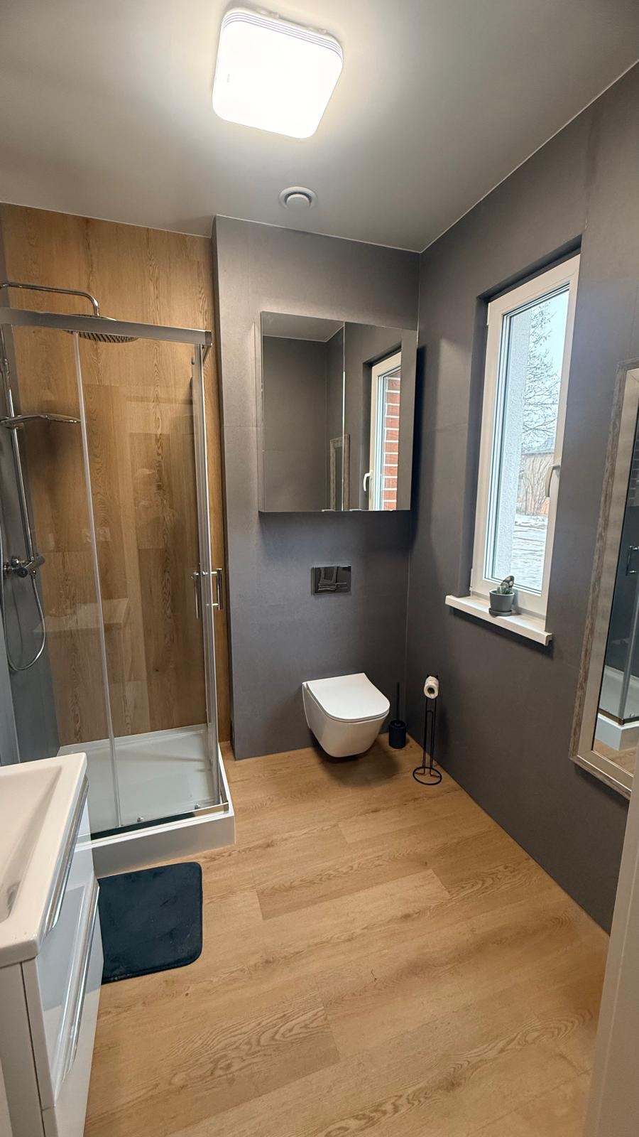 - ogrzewanie podłogowe we wszystkich pomieszczeniach