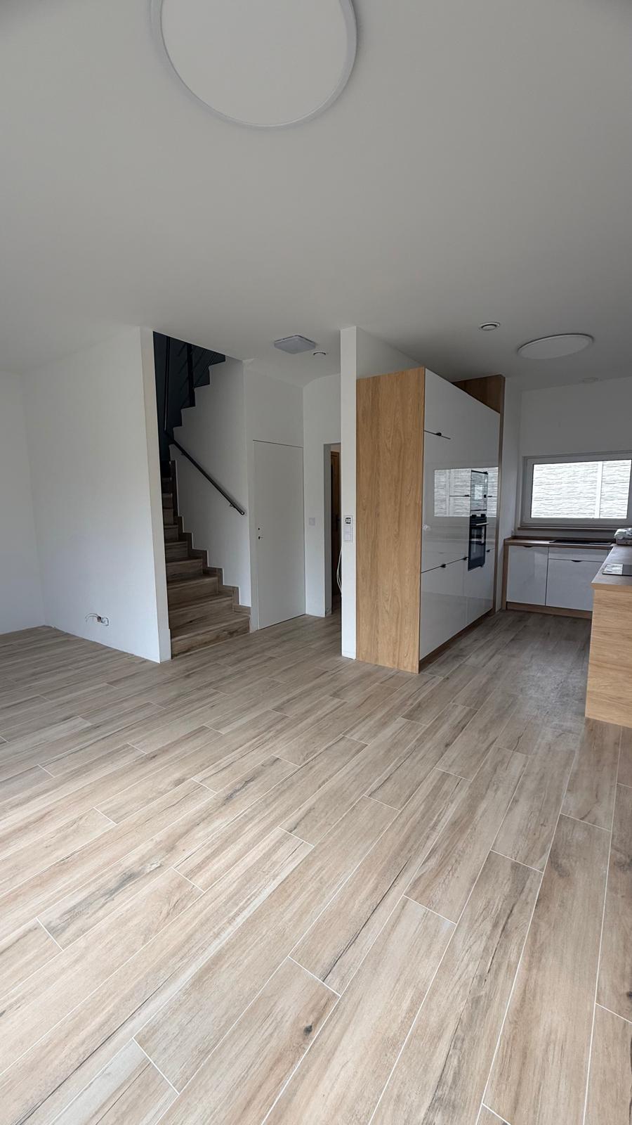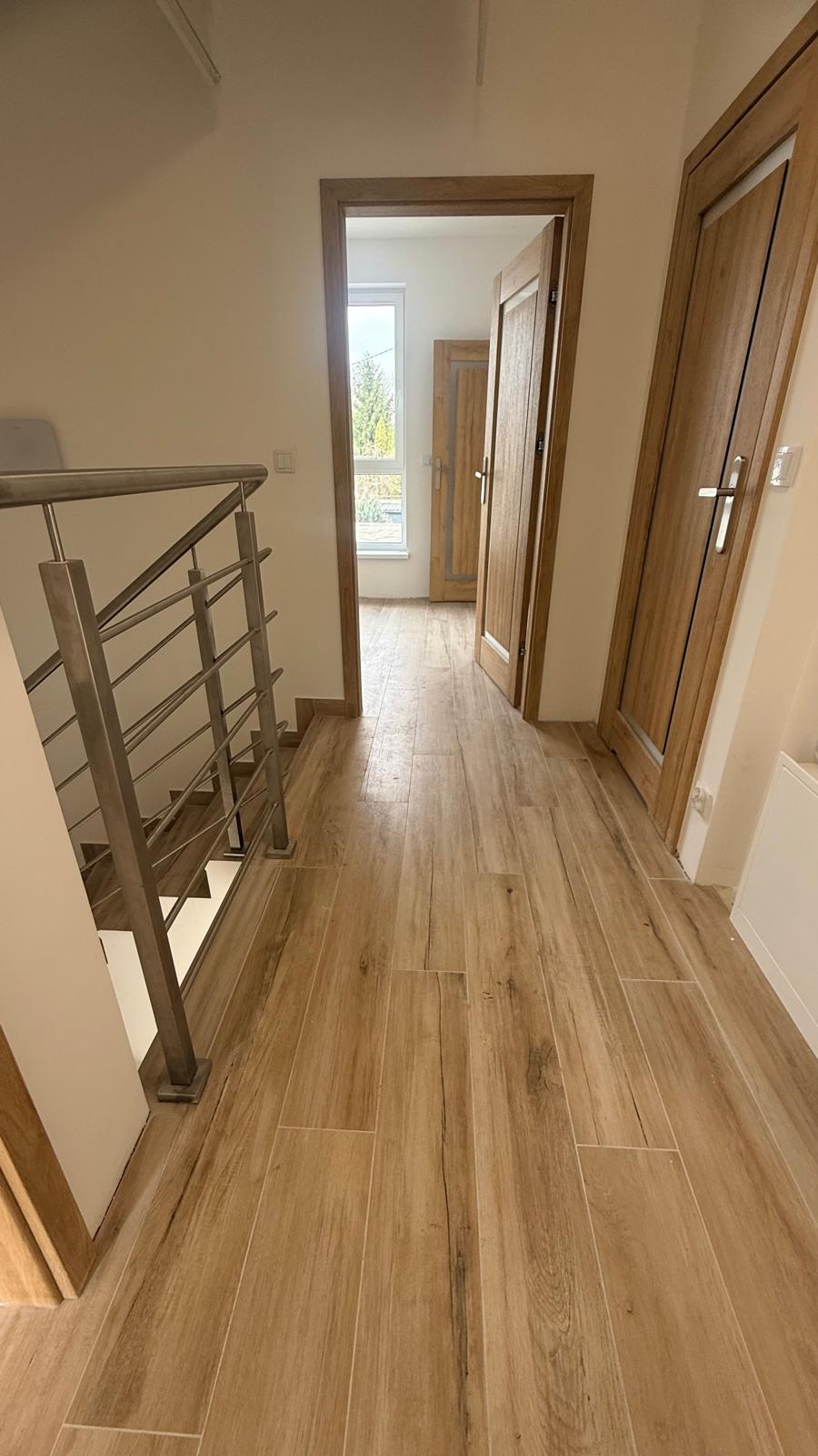 - Parter i piętro: ogrzewanie podłogowe + wykończone podłogi (płytki/panele)