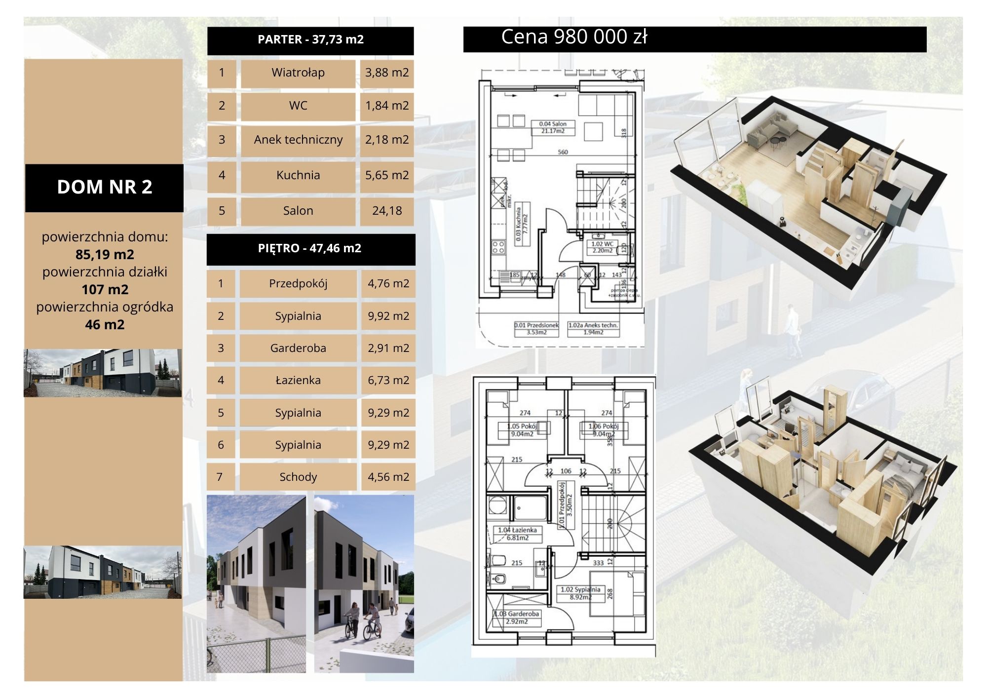 Na tym samym osiedlu jest dostępny jeszcze jeden dom sprzedawany w stanie deweloperskim w cenie 800 000 zł.