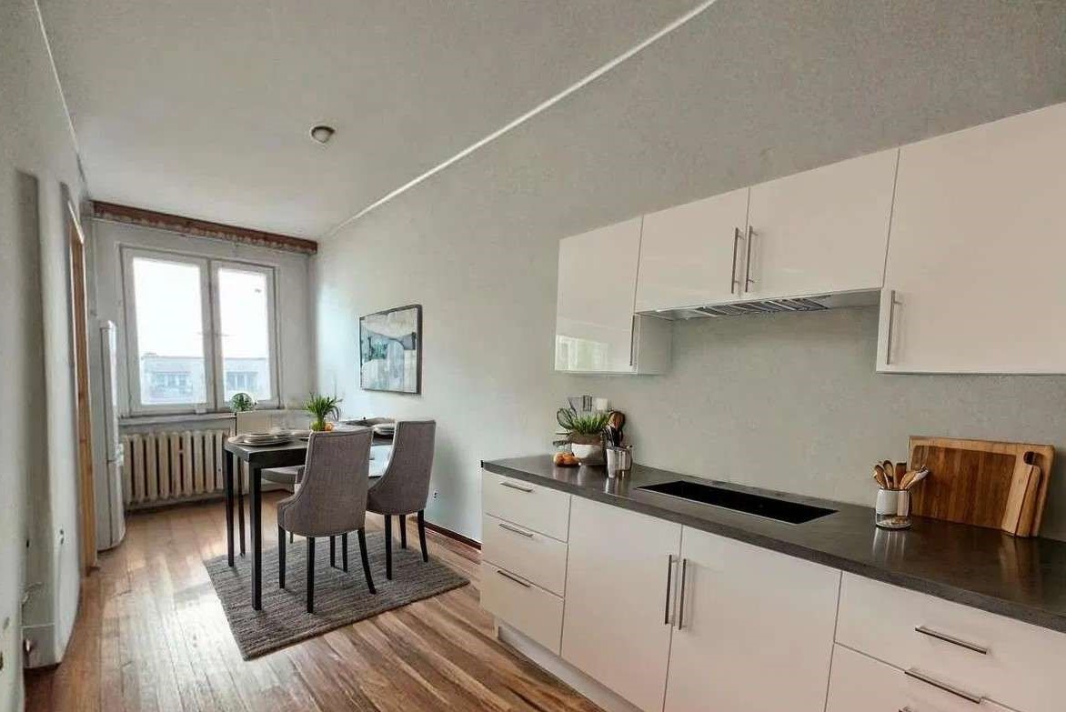 Obecny układ to dwa oddzielne pokoje oraz osobna kuchnia. Istnieje możliwość otwarcia kuchni na salon i stworzenia dużej, nowoczesnej przestrzeni dziennej z aneksem kuchennym. Odzielna łazienka oraz toaleta.